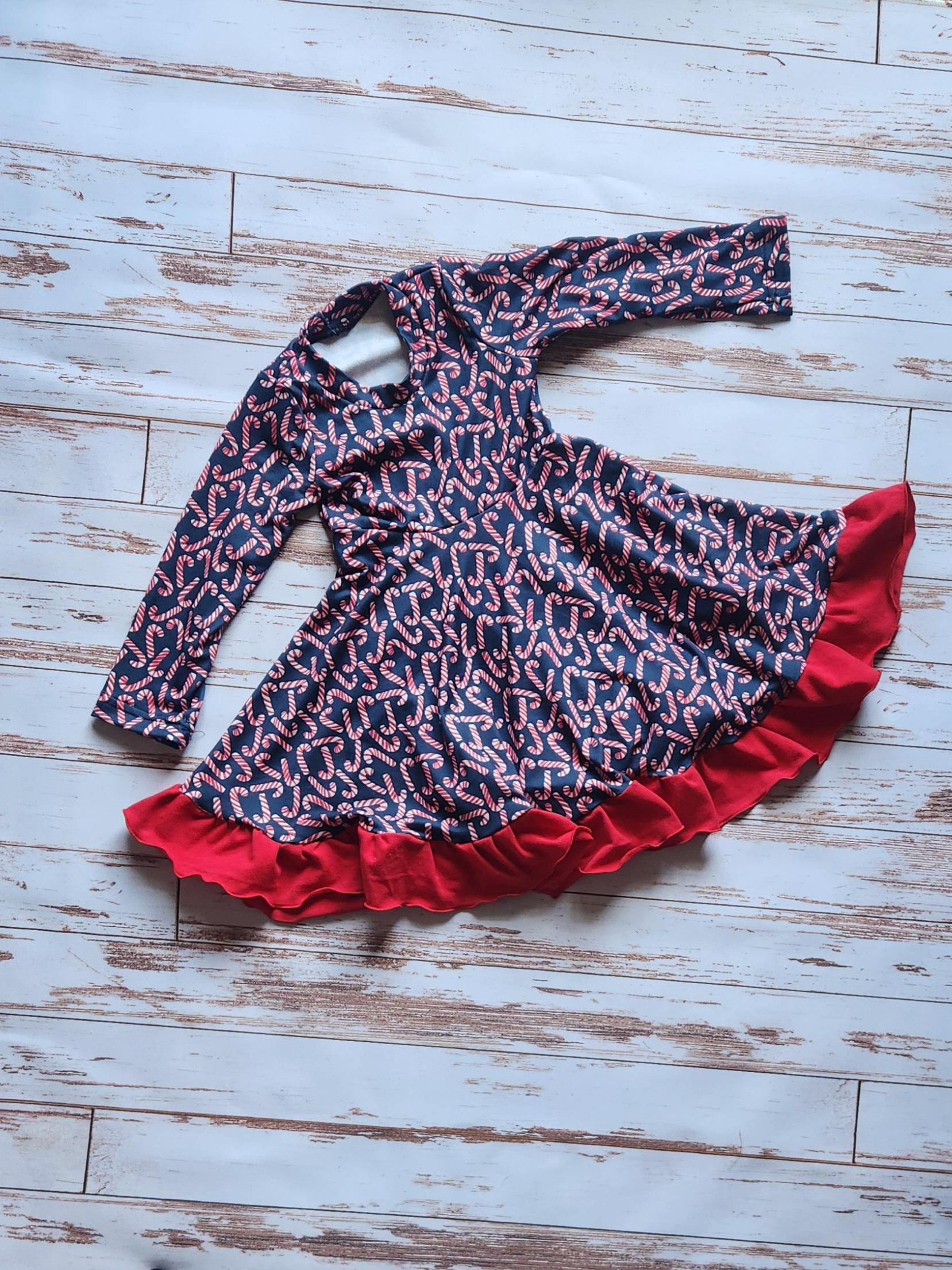 Candy cane dress for toddler girl, church dress for girls holiday dress, handmade christmas dress, ruffle dress girl, winter baby girl cloth