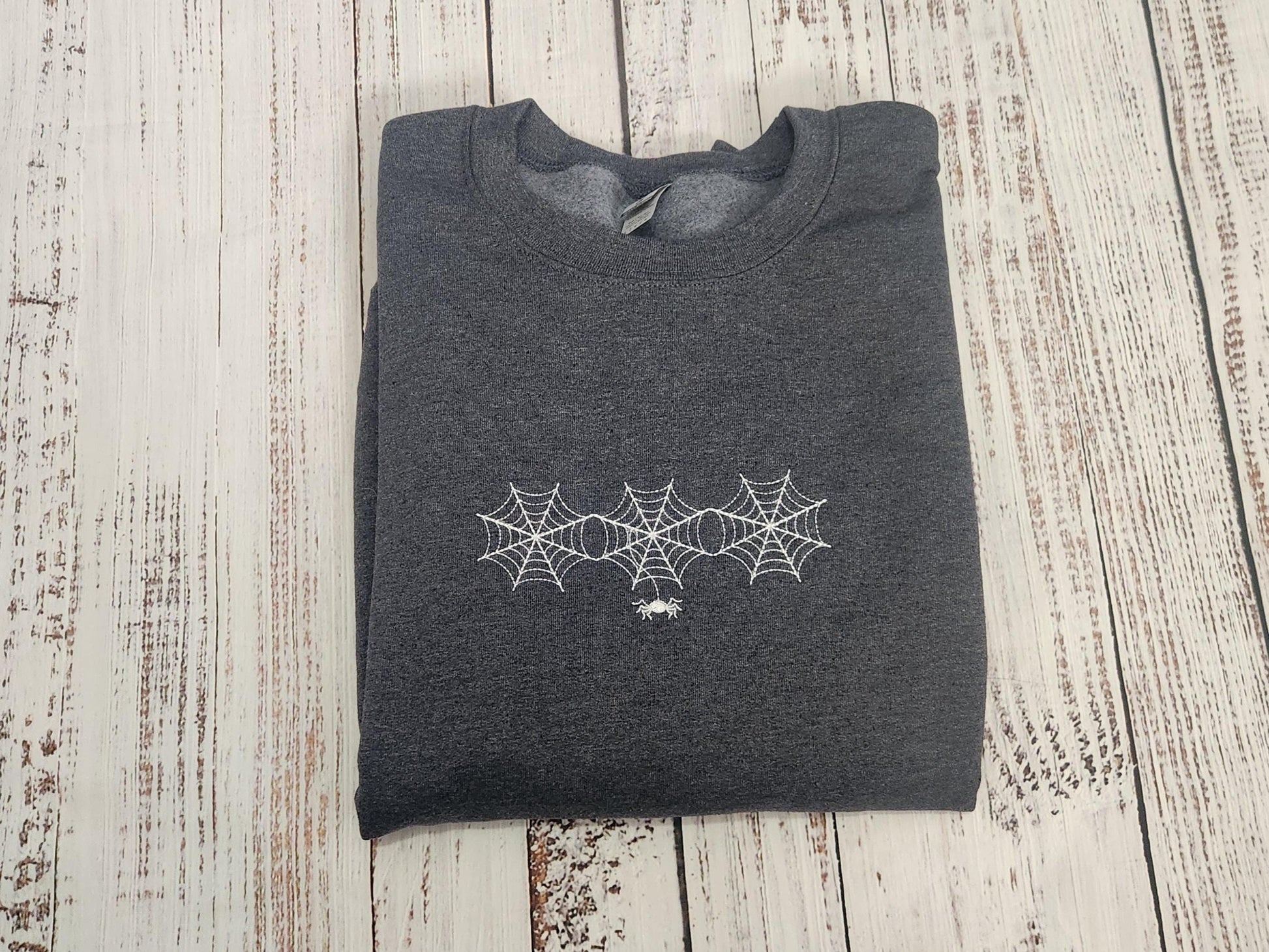 Embroidered Spiderweb Halloween Sweatshirt: Spooky Season Shirt