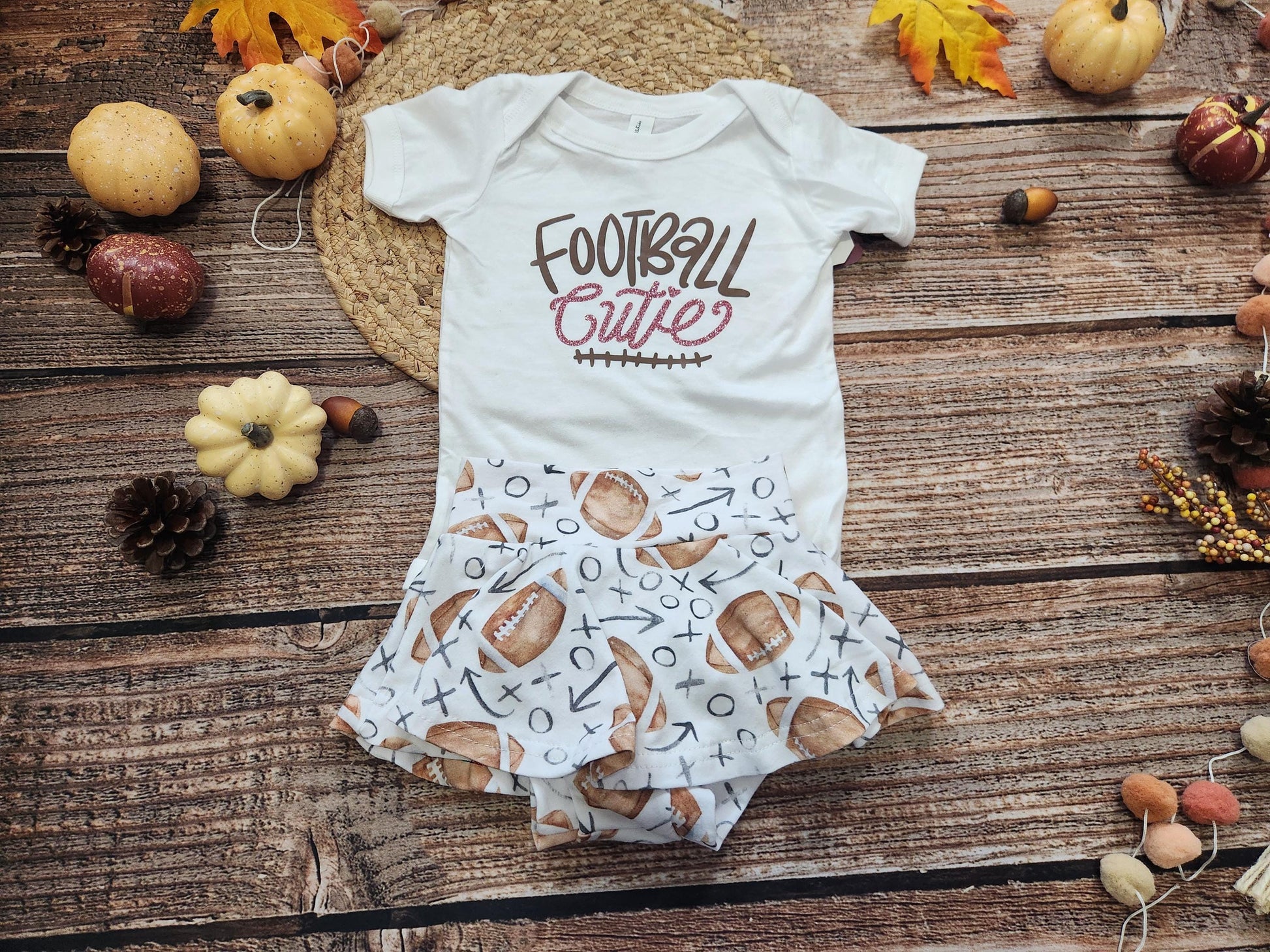 Football cutie girls game day football spirit outdit, baby bodysuit and skort set