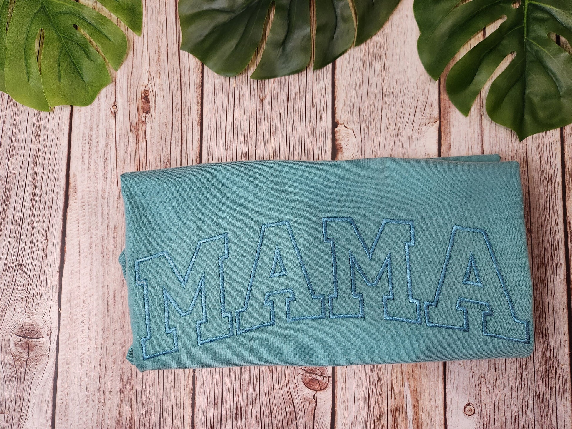 Personalized Mama Shirt: Embroidered Varsity Font, Seafoam Green